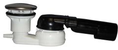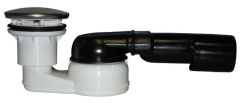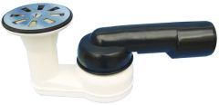 Сифон за поддушово корито DN40/50, за отвор на коритото d 90мм, отточна тръба от РЕ на шарнирна връзка и се настройва безстепенно от 0° до 90°, вход за свързване към шлаух 8-13мм (напр. от сауна), сифонната част се изважда за почистване, капачка кръгла d 112мм от неръждаема и полирана стомана (може да се доставят и цветни), защитната капачка при монтажа (играе роля и на ключ) се съдържа в опаковката, воден затвор: 50мм.