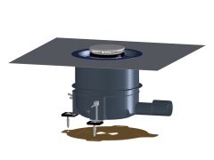HL570 FlexBox Пълен комплект за плоски душ корита с капак от неръждаема стоманаFlexBox, пълен комплект за монтаж на плоски душ корита от емайлирана стоманa, камък, акрил, композитни минерали или др. Отвор за оттичане Ø 90 мм; В комплекта се съдържат: предпазен капак, 3 монтажни скоби и шаблон за позициониране; гарнитура за хидроизолацията с вграден Flex-елемент (син); обтегач на рамката, отточен вентил с монтажен ключ и сифонна част.