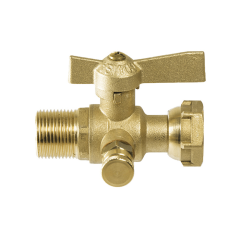 Сферичен кран 1/2" x 3/4" M с въртяща гайка и източващ вентил, месингова пеперудна ръкохватка