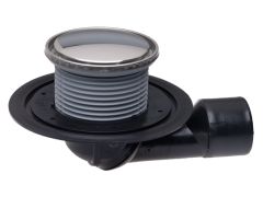 Подов сифон DN50/75, фланец за хидроизолацията, оттичане странично или долно с безстепенна настройка на отточната тръба от 0-90°, воден затвор, пластмасова наставка с променяема височина 20-73мм