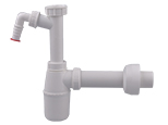 HL137/40 Сифон за шкафче за баня DN40x5/4", спестяващ мястоСифон за шкафче за баня с отточна тръба DN40 * въртяща се, спестяващ място, широка възможност за настройка дължините на тръбите, присъединителна резба 5/4", разглобяем резервоар за почистване, розетка