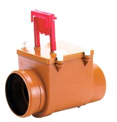 Канална възвратна клапа DN110 мм с автоматично електронно управляем клапен елемент, за фекални води според DIN 19578, допълнителен ръчен затвор, ревизионен капак, светлинна индикация за функционалност на клапата, светлинна и звукова сигнализация за евентуални смущения в работата. С възможност за връзка към компютър или към алармената система на сградата, материал АВS.