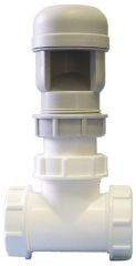 HL904T Вентилационна клапа DN40 с Т-разклонител DN40Вентилационна (противовакуумна) канална клапа за етажни отводнителни клонове DN40, с Т-разклонител DN40 x 6/4", дебит по въздух 5,3 l/s
