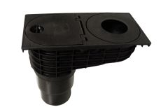 Ревизия за водосточни тръби DN110/125 и 360 ° въртяща се връзка (отточната тръба се настройва безстепенно от 0° до 90°), клапа против канални миризми незамръзваща с уплътнение, листоуловител с функция за преливане, ревизионен капак с дръжка, хоризонтално регулируеми пръстени за водосточни тръби d 80, 100 и 120мм.