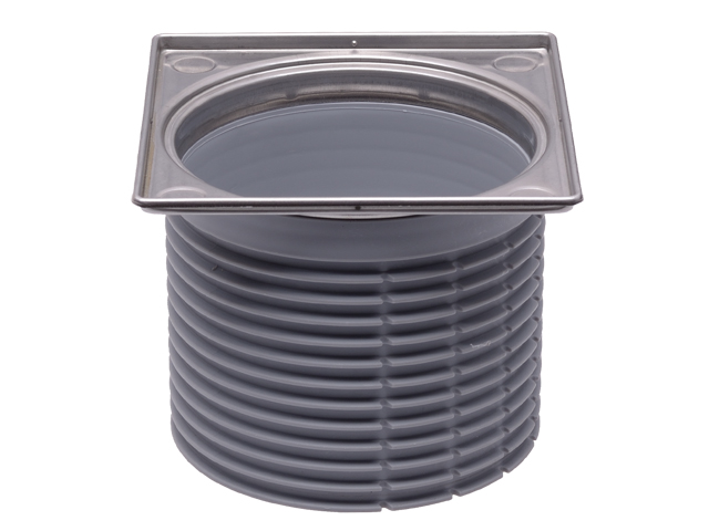 Наставка d 110мм с рамка от неръждаема стомана (V2A) 121х121mm, височина 100мм, О-ринг гумен уплътнител, вис. на рамката 6mm. Система "КЛИК-КЛАК" * новата заключваща система за подови решетки, чрез която картината на полуизвадените или липсващи решетки принадлежи вече в миналото. Просто решетката се полага, притиска се и "щраква" * готово!