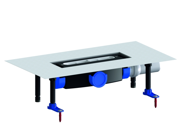 Тяло на душ-канал InFloor, НИСКО, DN40 за монтаж в равнината или до стената, с приспособление за вграждане в замазката, отточна тръба с възможност за отводняване отляво, отдясно или в средата, гъвкава хидроизолационна
