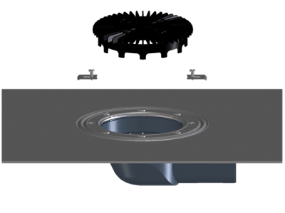 Воронка за плосък покрив DN75/110, странично оттичане, с термоизолирано тяло, със заводски заварена SBS битумна мембрана d 500мм за идеалното свързване с битумни хидроизолации, листоуловител d 180мм с UV защита.Защитната капачка при монтажа се съдържа в опаковката.