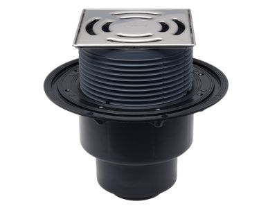 Подов сифон за тераси и балкони DN40/50, странично оттичане, фланец за хидроизолацията, наставка с променяема височина 12-70 мм и рамка 123 х 123 мм, пясъкоуловител, решетка 115 х 115 мм от неръждаема стомана и полирана. Защитната капачка при монтажа се съдържа в опаковката. Монтажна височина (на тялото на сифона) 57 мм!